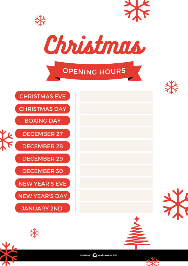 Christmas Campaign Social Media PostDownload and use this on your social pages PosterDownload and send to print to display in your shop or in your window.We recommend using a service like Poster Pigeon Opening Hours Poster Download and send to print to display in your shop or in your window. We recommend using a service like Poster Pigeon