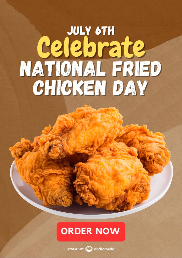 National Fried Chicken Day Campaign Social Media PostDownload and use this on your social pages PosterDownload and send to print to display in your shop or in your window.We recommend using a service like Poster Pigeon